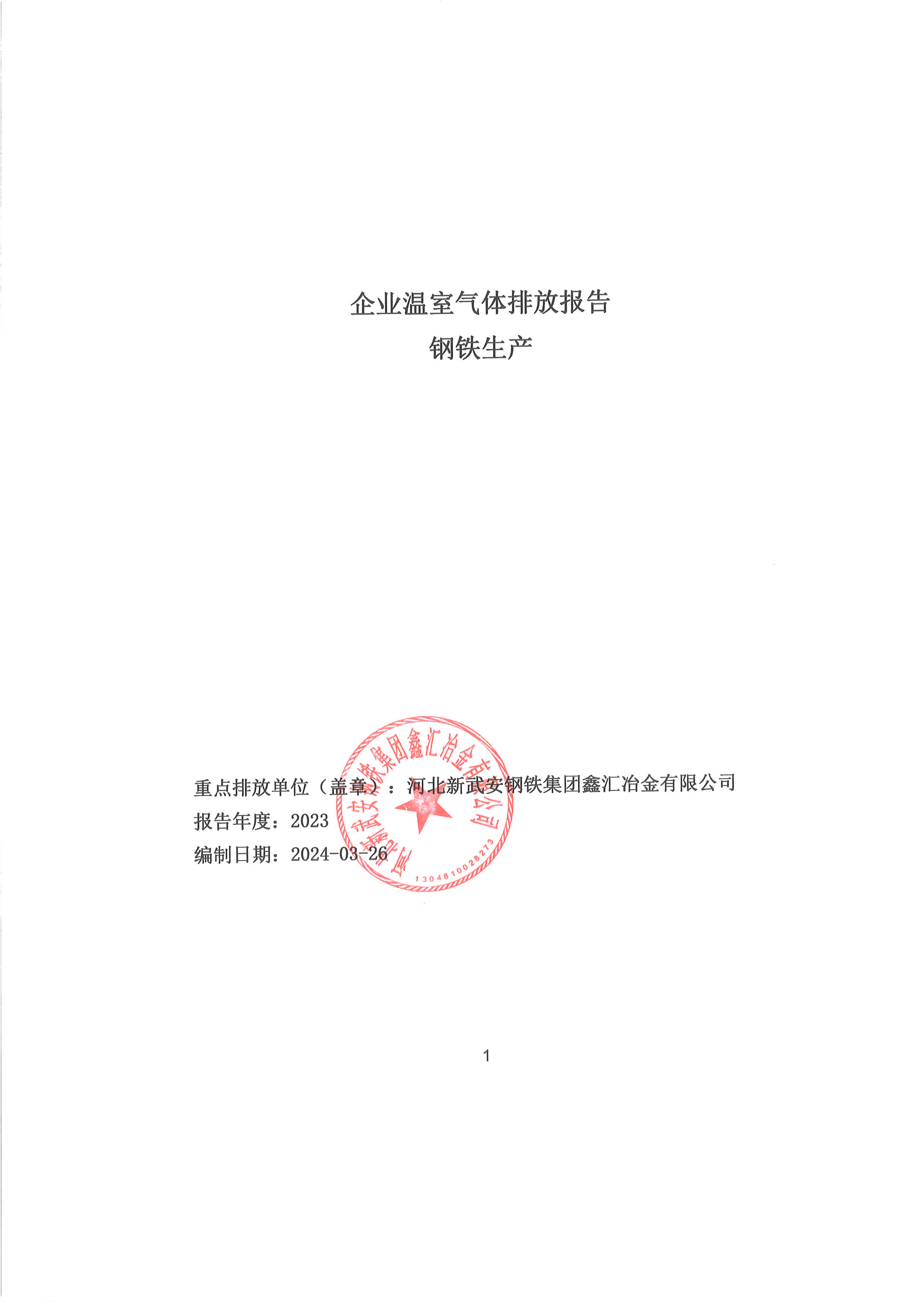 2023年河北新武安鋼鐵集團鑫匯冶金有限公司碳排放報告